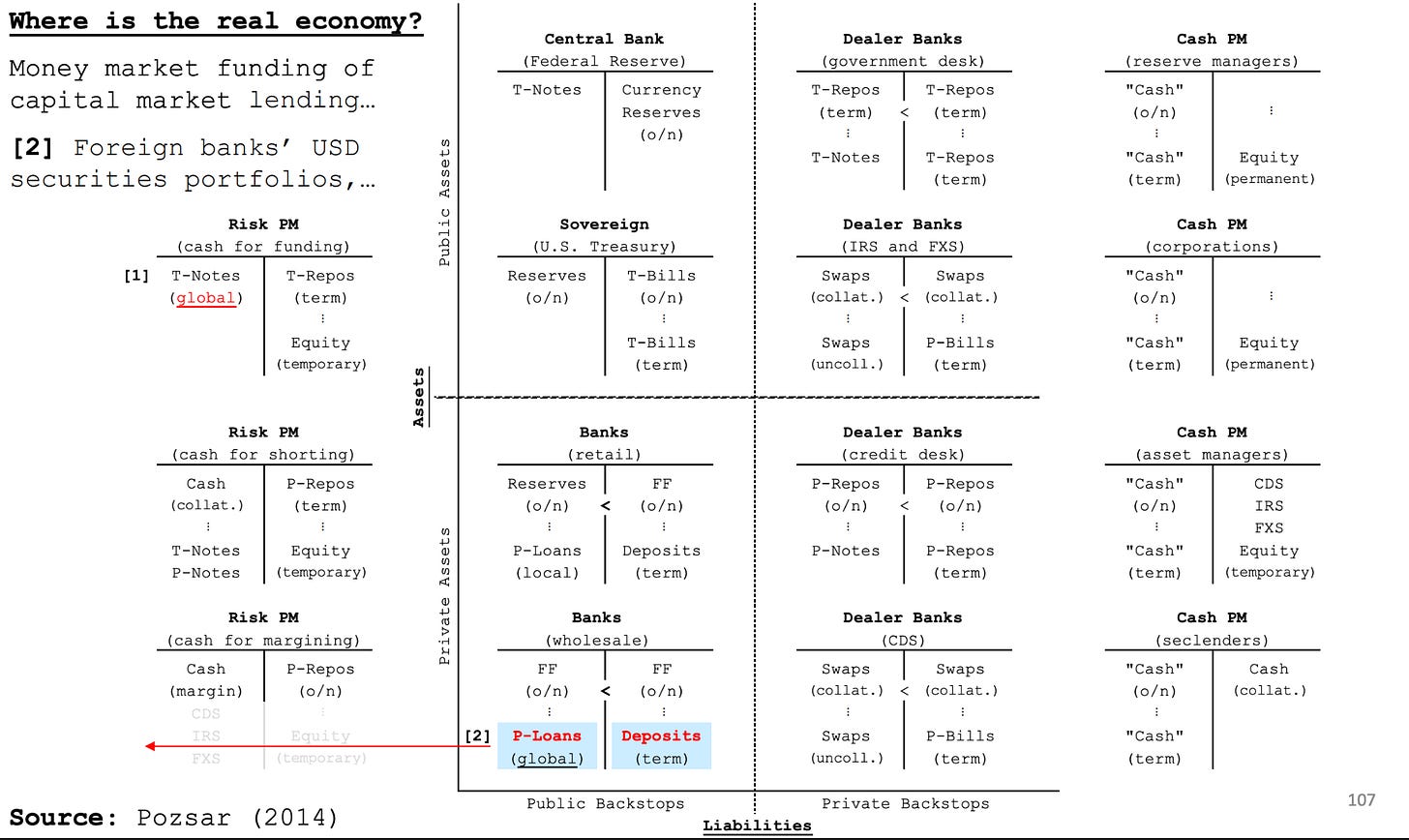 (If you’re interested, Poszar has an excellent albeit dizzying deck of 161 slides that look just like this, which aim to answer the question: Where is the real economy?)