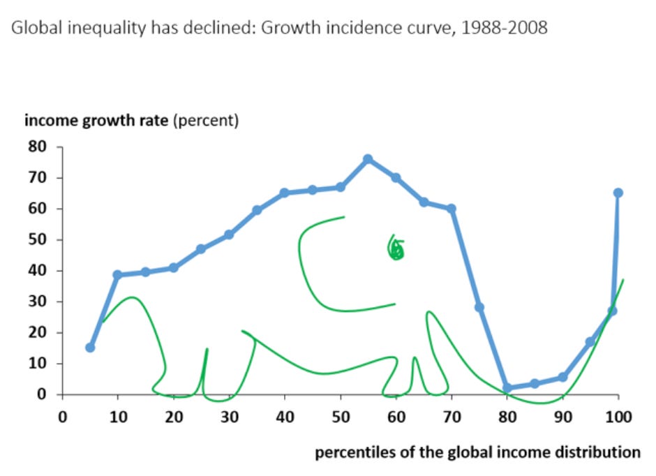 His central claim is that globalization produced global convergence as Western middle and lower classes experienced a “positional decline” in the global income distribution, while Asian middle classes surged upward and Western elites remained at the top.